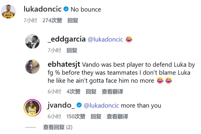 队友东契奇评论道:“你没弹跳。”